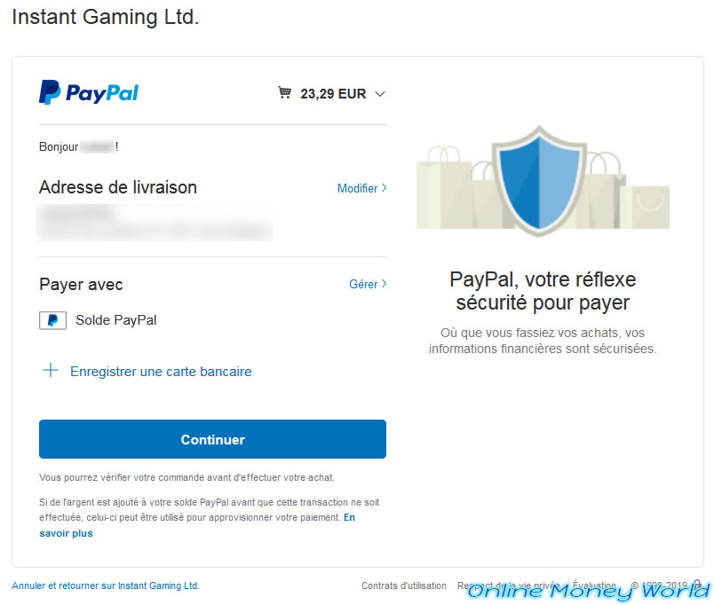 Notez qu'Instant-Gaming propose plusieurs moyens de paiement et que nous préférons payer en ligne via Paypal plutôt que par VISA (mais c'est un choix personnel).